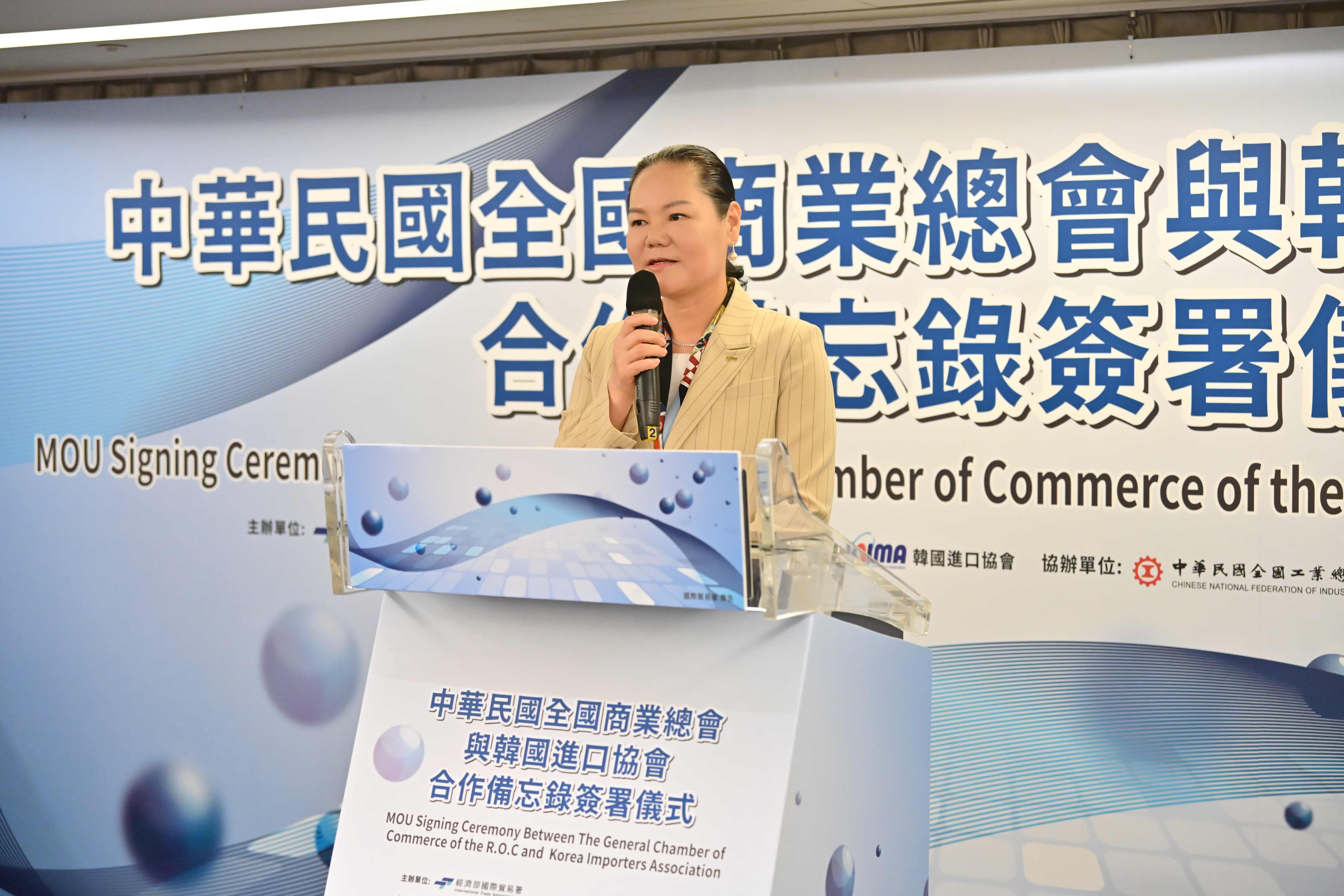 韓國進口協會尹英美會長表示,韓國與臺灣在經濟、文化與人員交流等領域長期合作,彼此為重要經貿夥伴。她指出,臺灣以半導體、ICT與精密機械等產業引領全球,展現強勁的創新動能。韓國進口協會自1970年成立以來,擁有約8,300家會員企業,致力推動進口產業發展與穩定供應鏈,並透過「韓國進口博覽會」促進國際交流,期盼此次MOU的簽署能進一步強化兩國的企業合作,開創互利共榮的新契機。