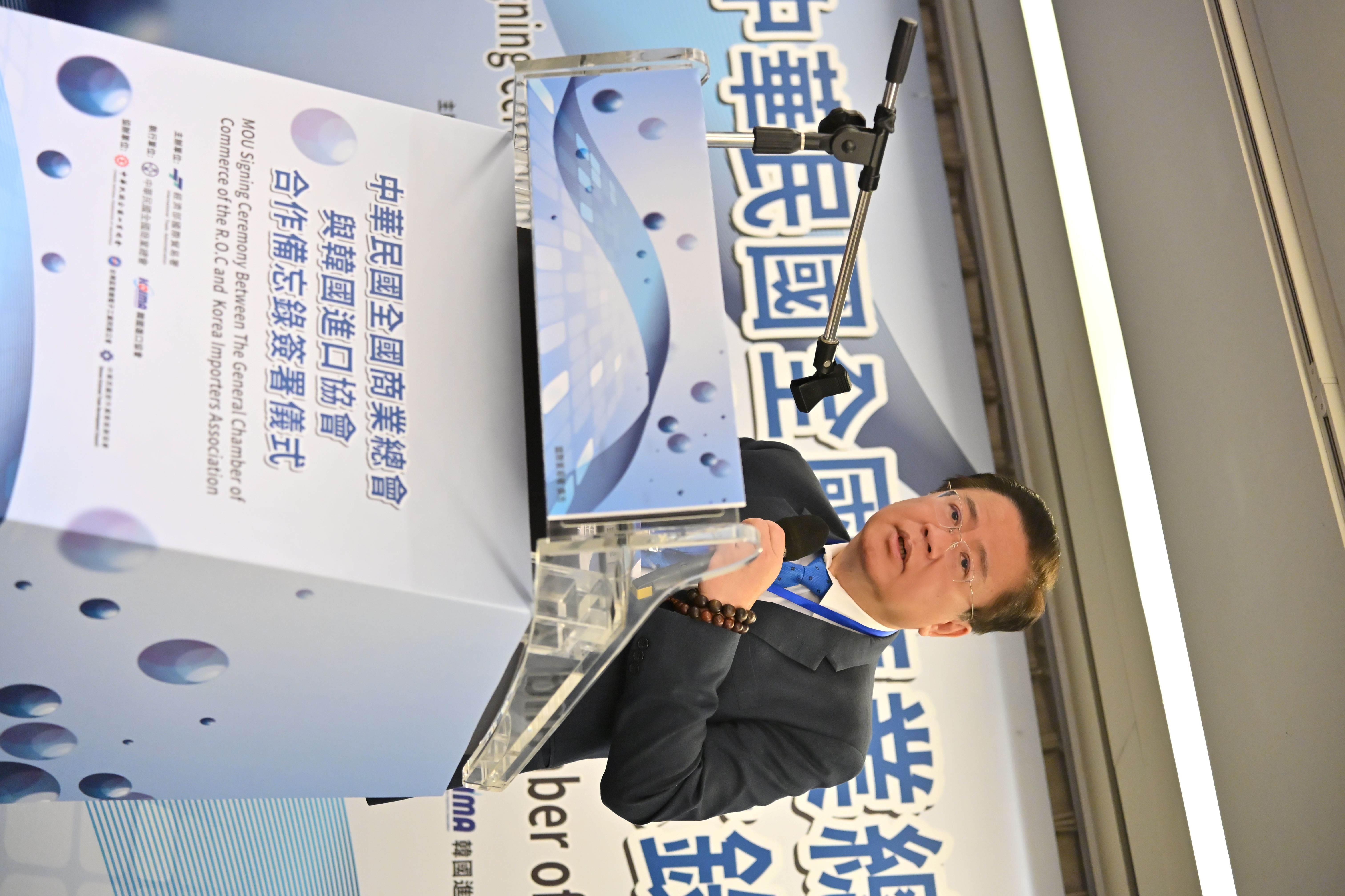 為強化臺韓雙邊產業合作與貿易資訊交流,促進企業間實質商業媒合,全國商業總會與韓國進口協會(Korea Importers Association, KOIMA)於今(11/5)日上午共同舉辦「臺韓產業交流論壇暨合作備忘錄簽署與商業媒合會」,並邀請中華民國全國工業總會及台灣區電機電子工業同業公會擔任協辦單位。會中,韓國進口協會尹英美會長及全國商業總會許舒博理事長雙方正式簽署合作備忘錄(MOU),在經濟部國際貿易署劉威廉署長及駐臺北韓國代表部高尚郁代理代表共同見證下,象徵臺韓產業合作邁向新里程碑,開啟雙邊經貿新篇章。