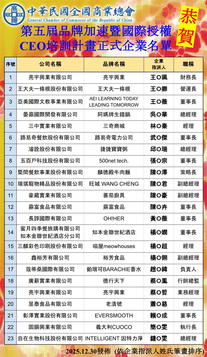 商總關注企業品牌國際拓展與政策資源導入,每年辦理「品牌加速暨國際授權CEO培訓計畫」,協助中小企業的政府輔導資源引薦、國際參訪拓銷、海外僑臺商通路對接、投融資媒合、企業策略優化培訓,並導入教練業師輔導、深度訪視關懷,以及品牌企業學長姐保母制,透過【品牌加速CEO聯誼會】練接歷屆學長姊、學弟妹情誼,協助企業品牌加速優化,擴大國際的品牌能見度!