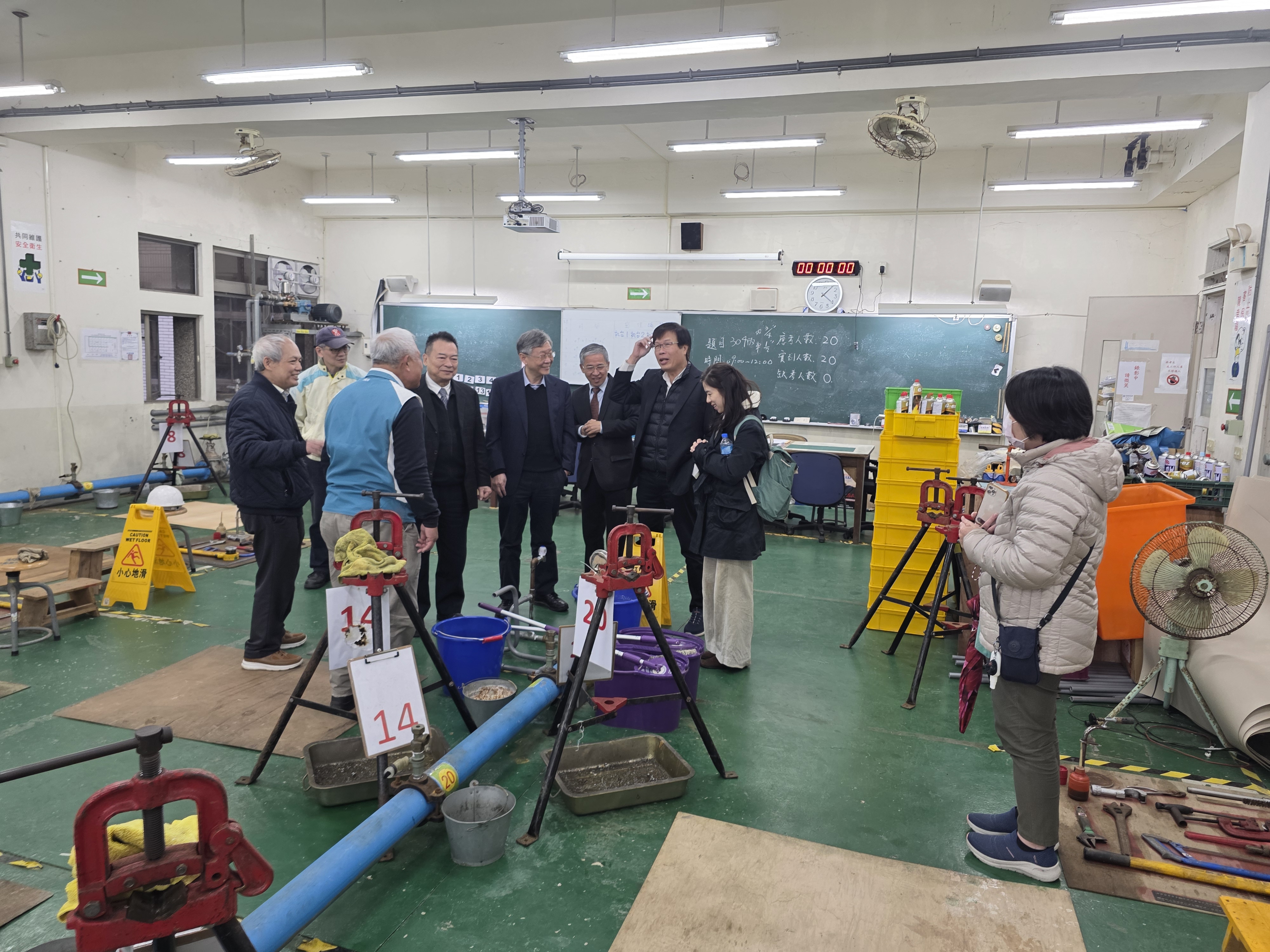 簽約儀式後,商總人資委員會在校方引導下,實地參訪聖約翰科大引以為傲的專業訓練基地。這些基地均已通過勞動部評鑑,具備「即測即評」資格,包括:堆高機操作、自來水管配管、氣體燃料導管配管、室內配線(乙級、丙級)以及居家照護實習教室。