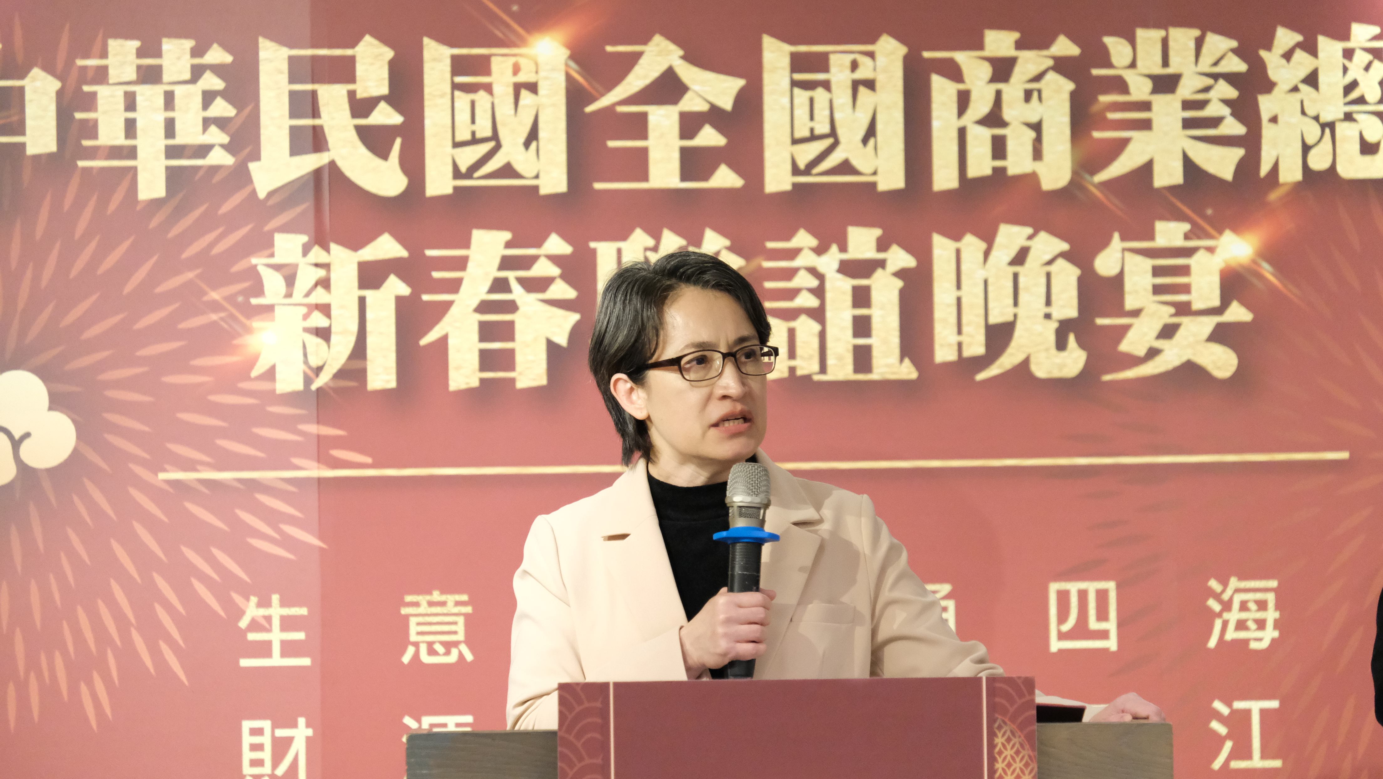 商總今年春酒也邀請國民黨鄭麗文主席、民進黨蘇巧慧委員、民眾黨邱慧洳幹事長等立法院的貴賓,共有約20名立委以諮詢顧問身分出席,多名立法委員皆上台向與會貴賓表達祝福與感謝。