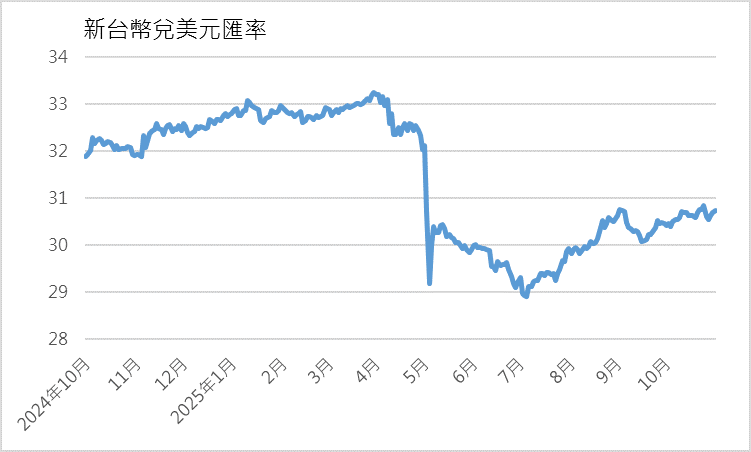 圖1 近1年新臺幣兌美元趨勢
