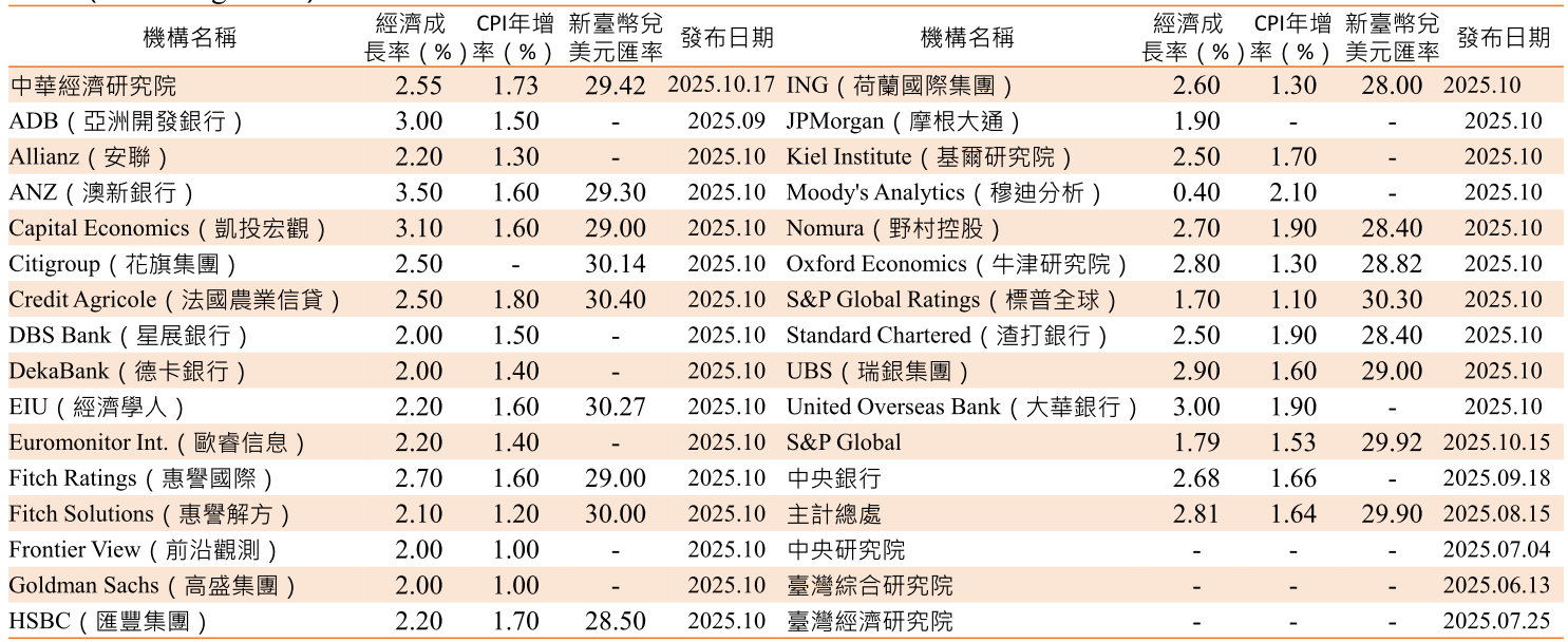 資料來源:中華經濟研究院經濟展望中心,〈2025年第4季臺灣經濟預測〉座談會,2025.10.17。
